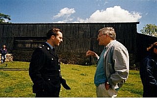 Dad on set talking with the orginal bobby, Nick Berry