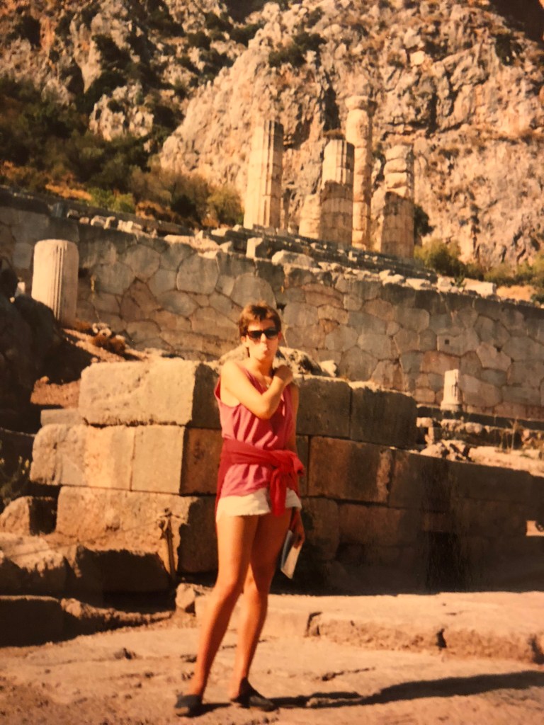 Previous Image B64A6C1A-3CE8-4D90-8703-4937EBE7144C Me in my student days at the sacred ancient Greek ruins of Delphi